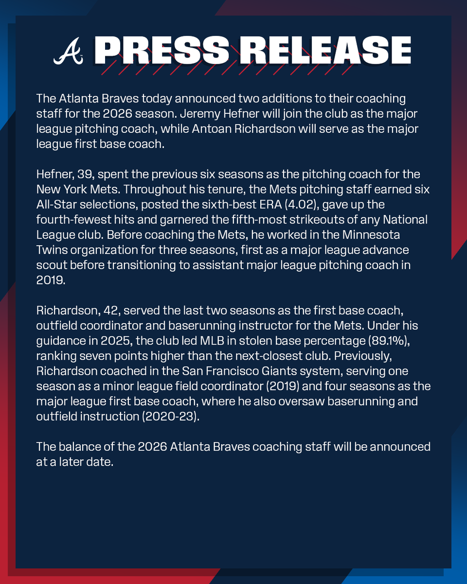 The #Braves today reported RHP Ian Anderson to Atlanta after optioning RHP Davis Daniel to Triple-A Gwinnett following yesterday’s game. The club today also signed OF Eddie Rosario to a major league contract, and optioned OF Jarred Kelenic to the Stripers. To make room on the 40-man roster, Atlanta designated RHP Zach Thompson for assignment.