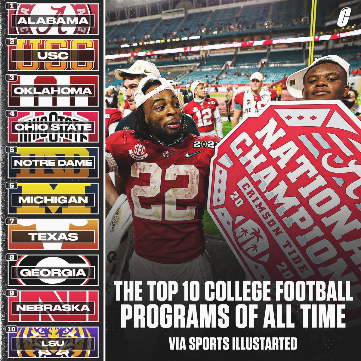 The top college football programs all time via Sports Illustrated