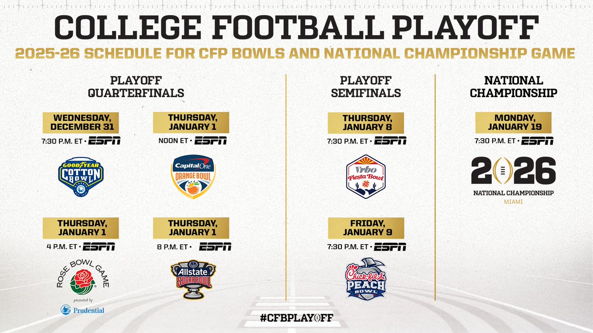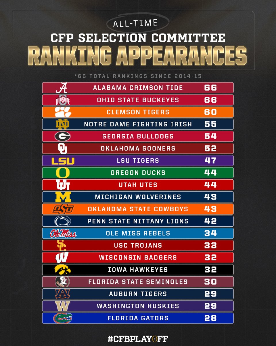 College Football Playoff (@cfbplayoff) has 760K X followers with a 1.04% engagement rate over the past 12 months. Across 676 posts, College Football Playoff received 457K total likes and 45.3M impressions, averaging 677 likes per post. This page tracks College Football Playoff's performance metrics, top content, and engagement trends — updated daily.