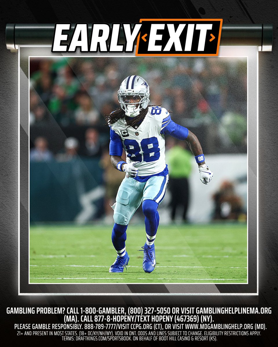 CeeDee Lamb has officially been ruled OUT and is eligible for Early Exit! Wagers will still appear as a Loss BUT you'll be credited with your winnings within the next 24 hours. We got you 👑