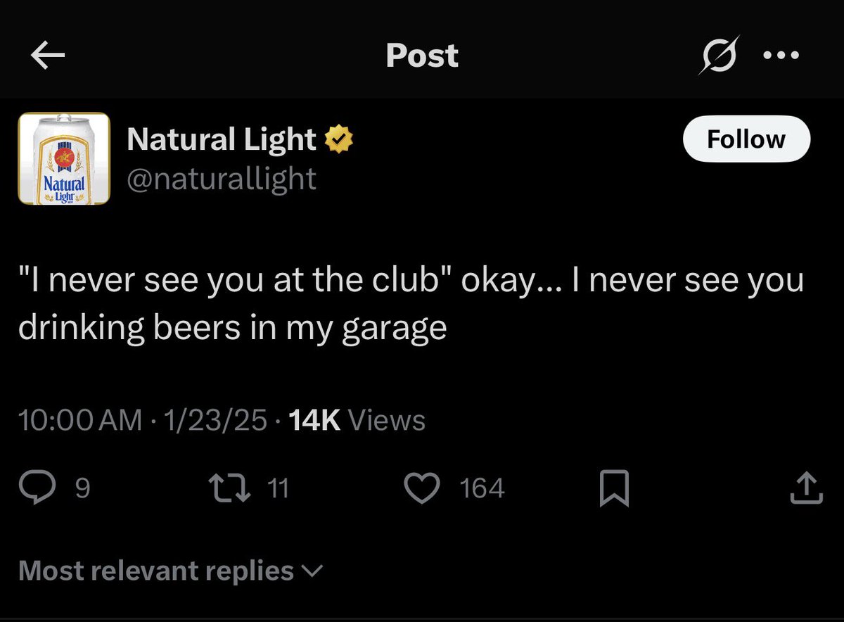 Garage Beer (@drinkgaragebeer) has 46.3K X followers with a 1.20% engagement rate over the past 12 months. Across 2.46K posts, Garage Beer received 358K total likes and 31.8M impressions, averaging 146 likes per post. This page tracks Garage Beer's performance metrics, top content, and engagement trends — updated daily.
