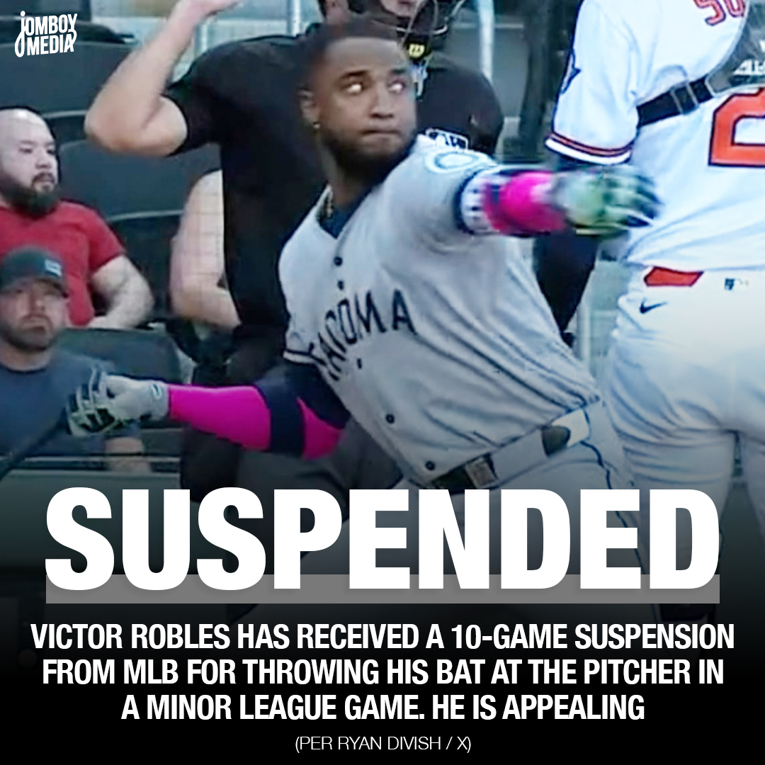 Victor Robles has received a 10-game suspension from MLB for throwing his bat at the pitcher in a Minor League game. He is appealing
