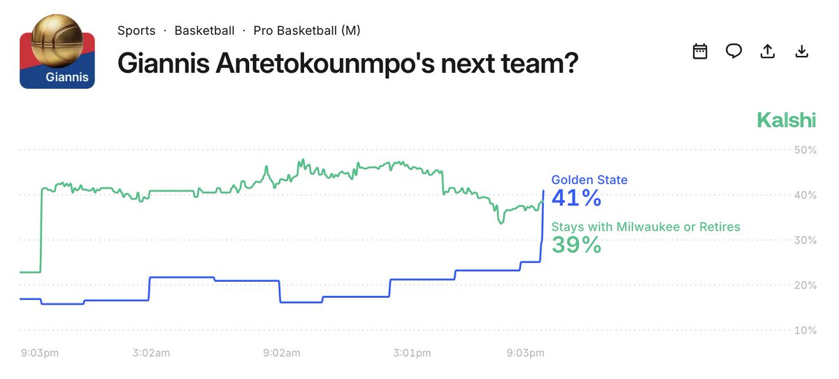 Kalshi Hoops (@kalshihoops) has 79.1K X followers with a 0.86% engagement rate over the past 12 months. Across 2.29K posts, Kalshi Hoops received 641K total likes and 76.6M impressions, averaging 280 likes per post. This page tracks Kalshi Hoops's performance metrics, top content, and engagement trends — updated daily.