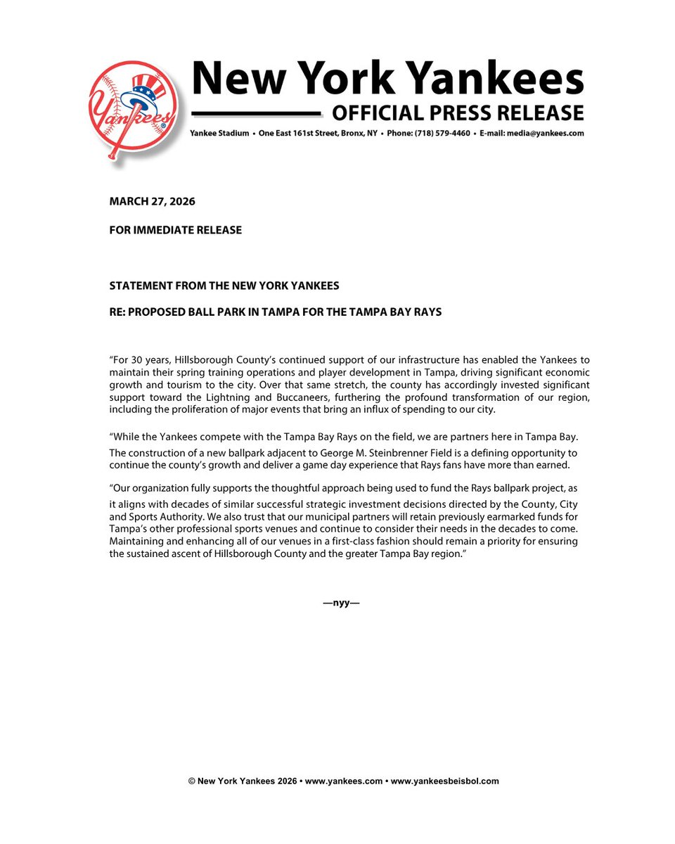 Tampa Bay Rays (@raysbaseball) has 644K X followers with a 1.18% engagement rate over the past 12 months. Across 1.38K posts, Tampa Bay Rays received 397K total likes and 35.1M impressions, averaging 288 likes per post. This page tracks Tampa Bay Rays's performance metrics, top content, and engagement trends — updated daily.