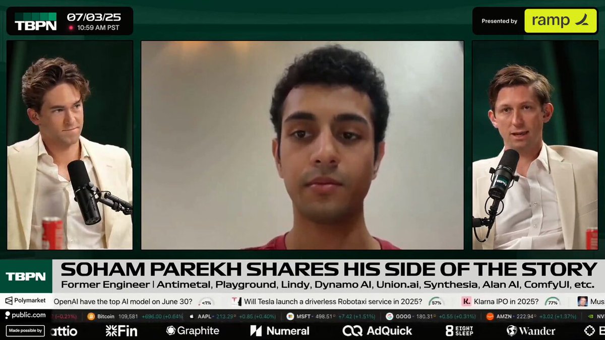 BREAKING: Soham Parekh will be joining us live at 11:00 AM PST to share his side of the story.