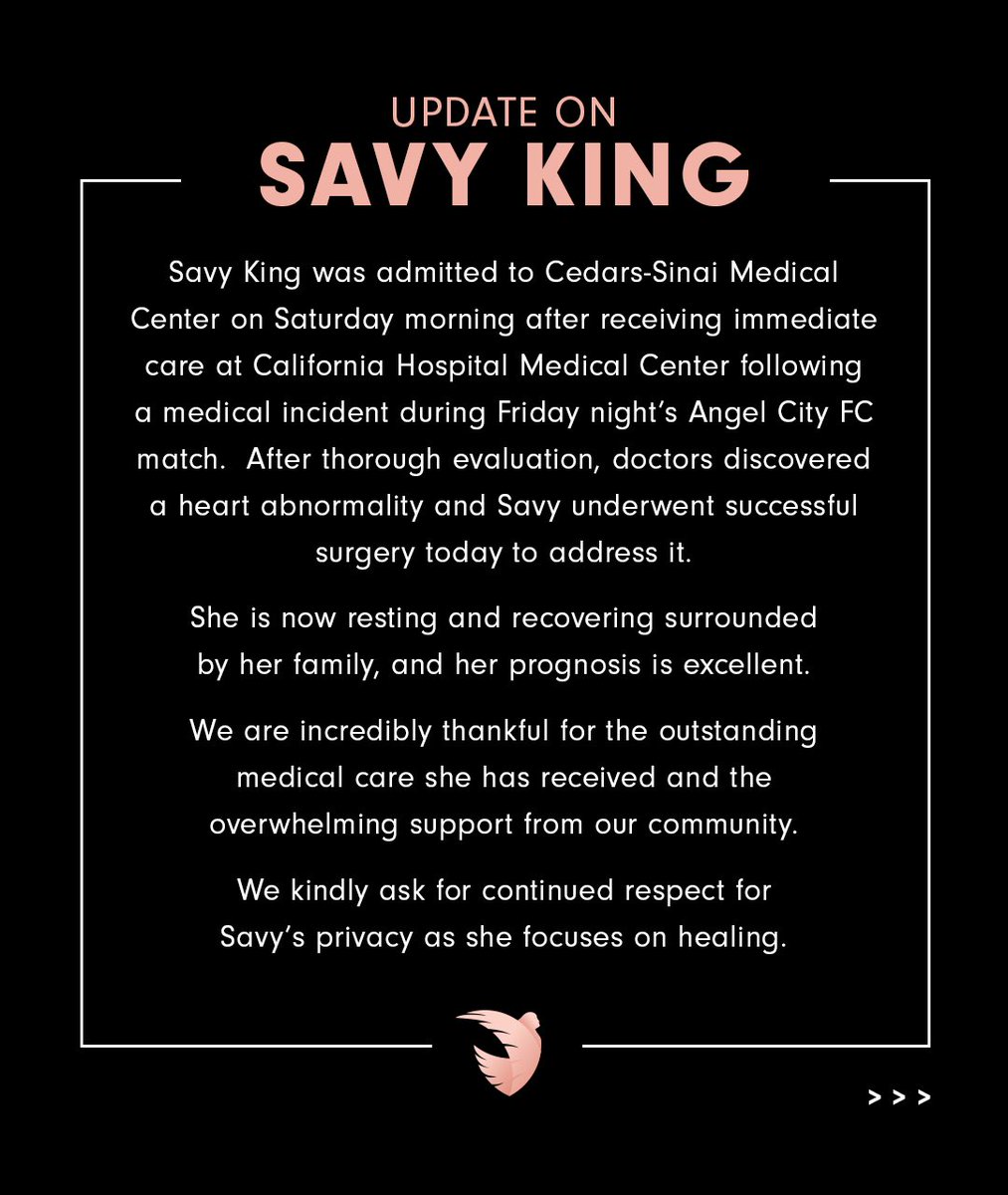 Savy King Update: Savy was transported by EMS to the hospital following a medical event on the field. She is responsive and undergoing further evaluation. We thank everyone for their concern and support.